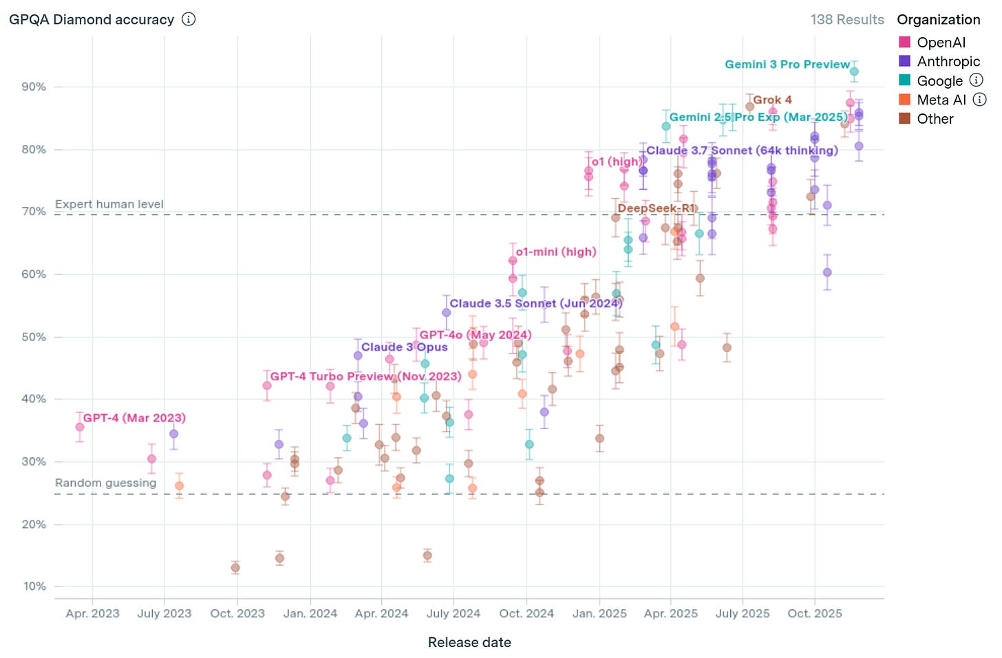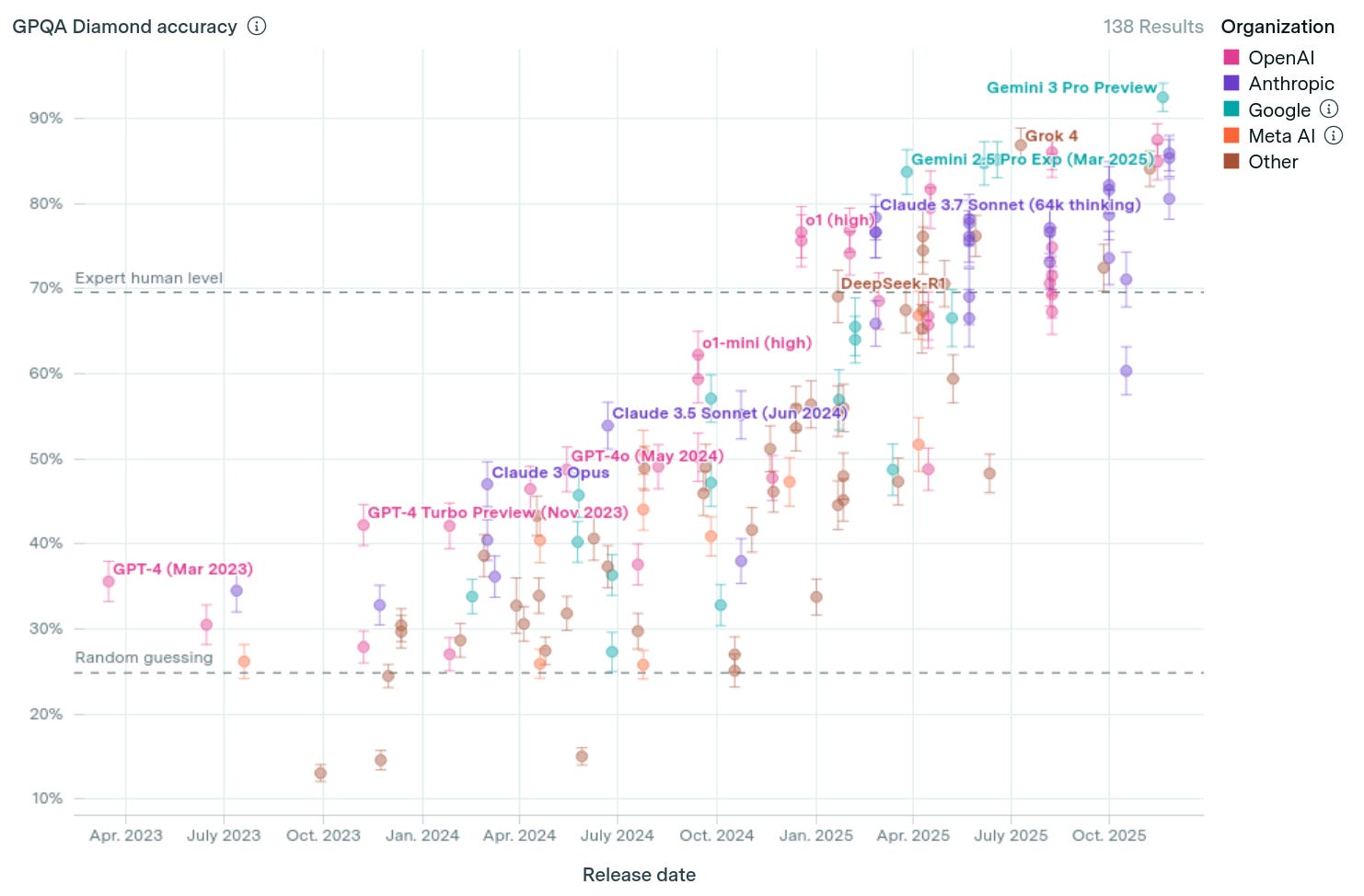 I don’t even know what that question is asking, and would have no idea where to get started, but we’re at the point where models have far surpassed even graduate students with experience in the relevant field. And this progress has happened over just the past few years: